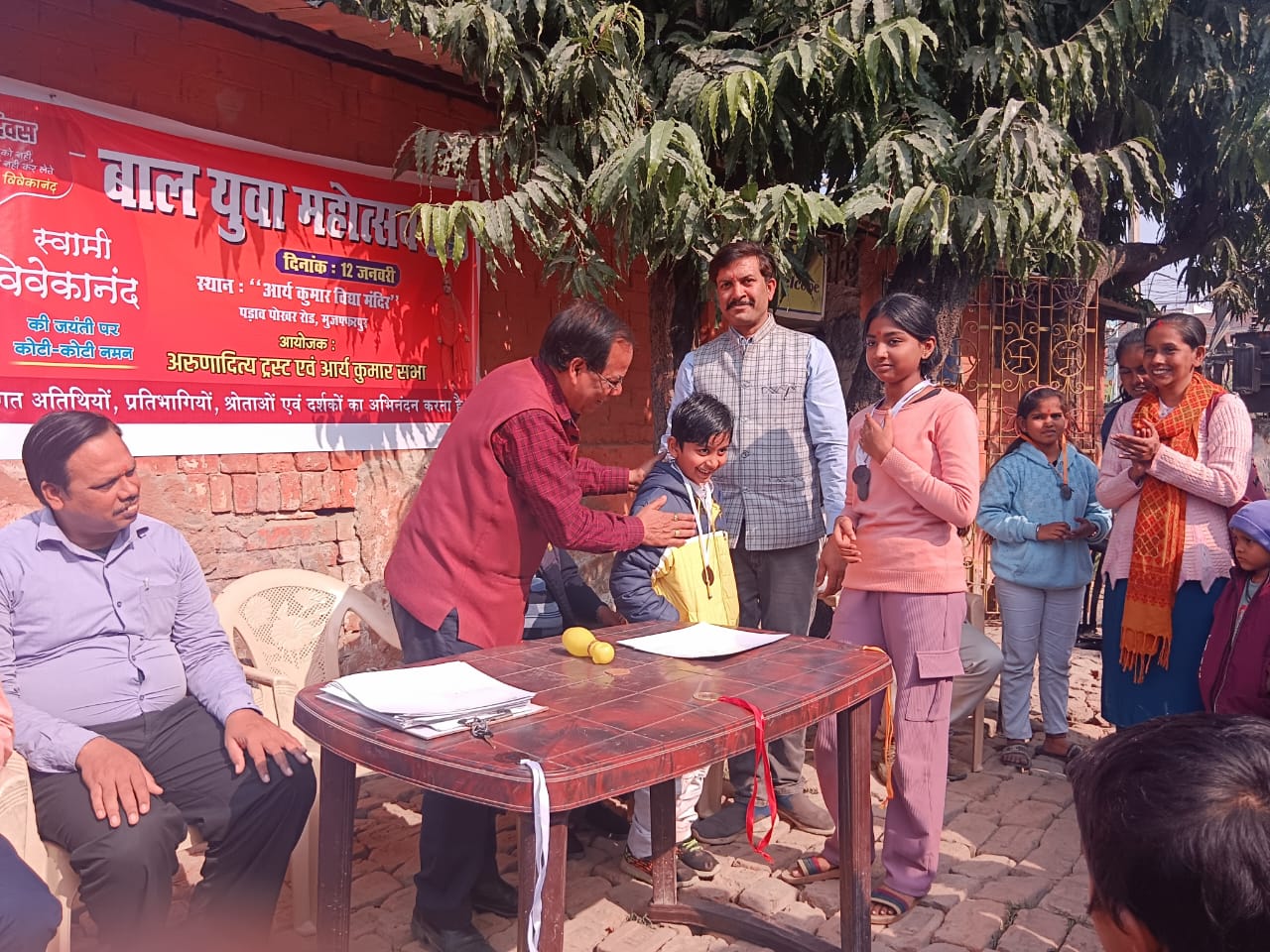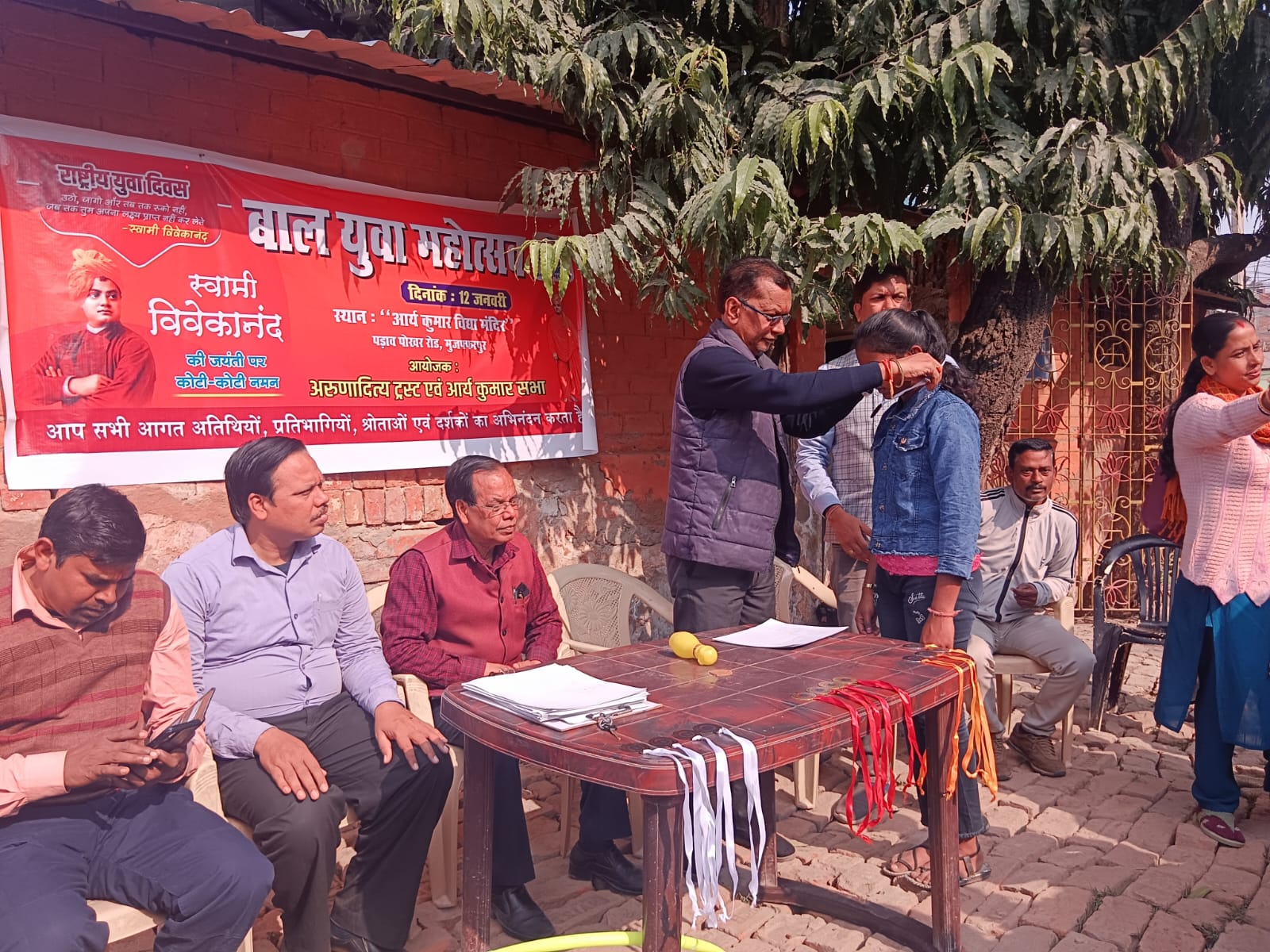 आज दिनांक 12 जनवरी 2025 को स्थानीय पड़ाव पोखर रोड स्थित आर्य कुमार सभा के प्रांगण में अरुणादित्य ट्रस्ट एवं आर्य कुमार विद्या मंदिर के संयुक्त तत्वावधान में बाल युवा महोत्सव का आयोजन स्वामी विवेकानंद की जयंती के सुअवसर पर किया गया I कार्यक्रम का उद्घाटन मुख्य अतिथि डॉ. महेश चंद्र प्रसाद (प्रधान, आर्य समाज- घिरनी पोखर), एवं अरुणादित्य ट्रस्ट के संयुक्त सचिव हंस कुमार ने संयुक्त रूप से किया I डॉ. महेश ने कहा स्वामी विवेकानंद एक महान आध्यात्मिक गुरु थे, जिसके माध्यम से उन्होंने अल्पायु में ही अपने ज्ञान से पूरे देश को गौरवान्वित किया I इस अवसर पर स्वामी जी के ऊपर भाषण एवं चित्रकला प्रतियोगिता कराया गया I एकाग्रता को बढ़ाने वाले खेल में गुलेल, रस्सी कूद एवं लक्ष्य-भेद खेल का आयोजन किया गया I कार्यक्रम का संचालन मुजफ्फरपुर जिला योग संघ के सचिव कुमार आदित्य एवं विद्यालय की शिक्षिका नीतू कुमारी, निकिता कुमारी एवं छोटू कुमार ने किया I पुरस्कार वितरण डॉ. महेश प्रसाद (प्रधान, आर्य समाज- घिरनी पोखर), ट्रस्ट के संयुक्त सचिव हंस कुमार, आर्य कुमार सभा के प्रधान अमित कुमार, मंत्री डॉ. शंभू कुमार, आर्य समाज- आमगोला के मंत्री डॉ. अजीत कुमार गौड़, आर्य समाजी दिनेश कुमार, हवन कर्ता आचार्य अरुण कुमार ने किया I धन्यवाद ज्ञापन आर्य कुमार विद्या मंदिर के प्रधानाध्यापक राजेश कुमार ने किया और बच्चों को स्वामी जी के जीवन मूल्यों को जीवन में उतारने की प्रेरणा दी I