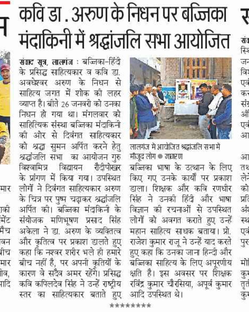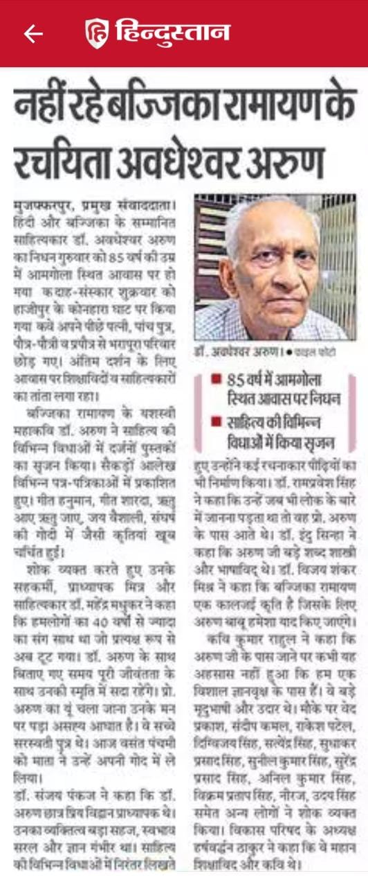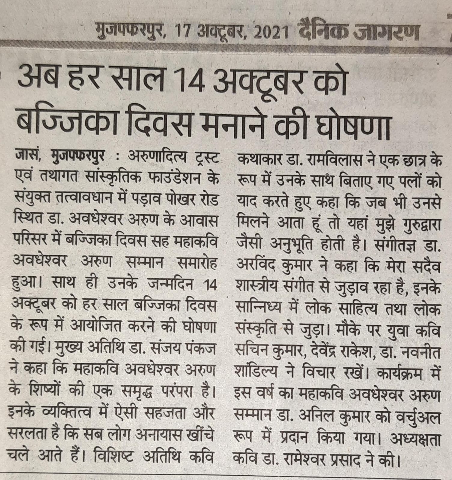 महाकवि अवधेशवर अरुण जन्मदीन सह बज्जिका दिवस समारोह 2021