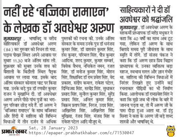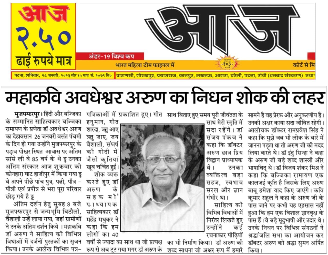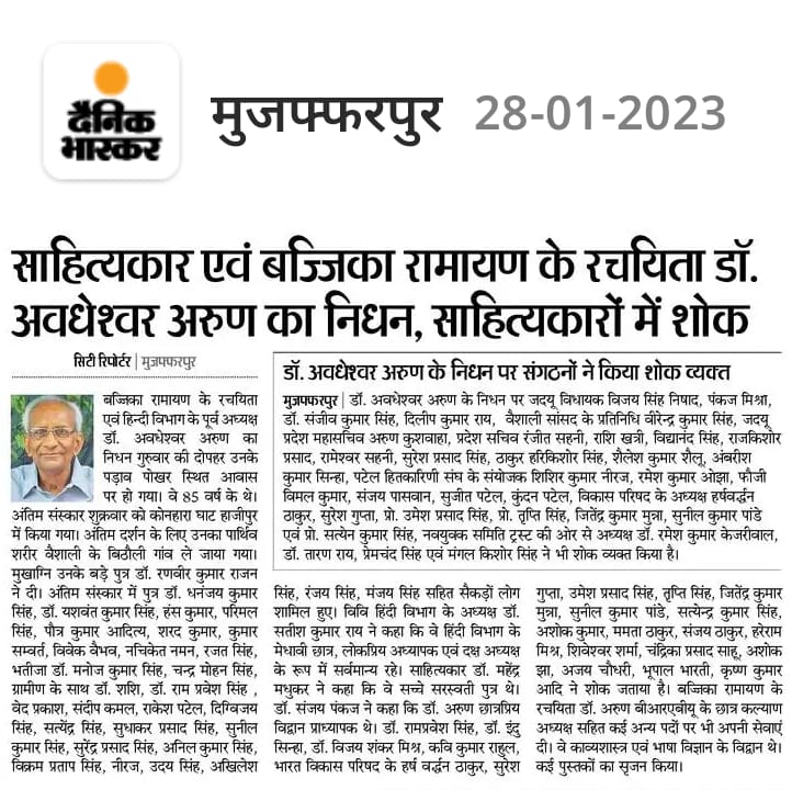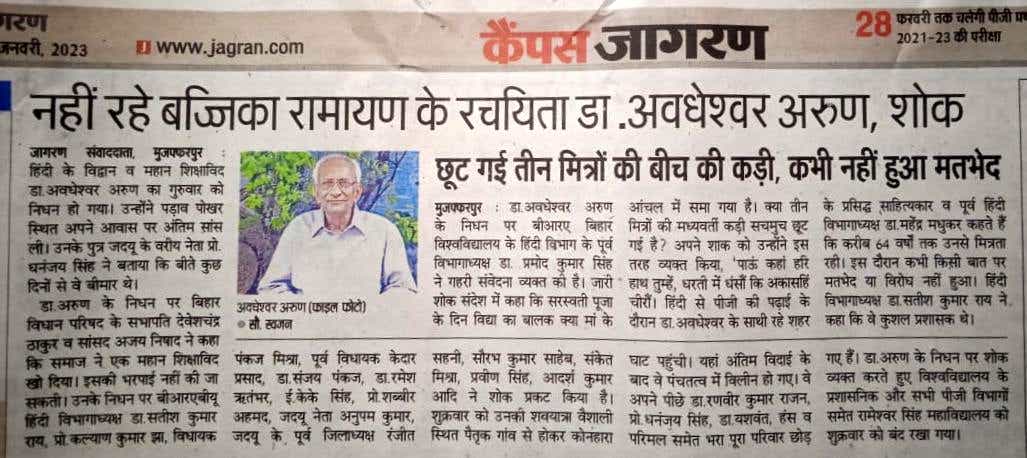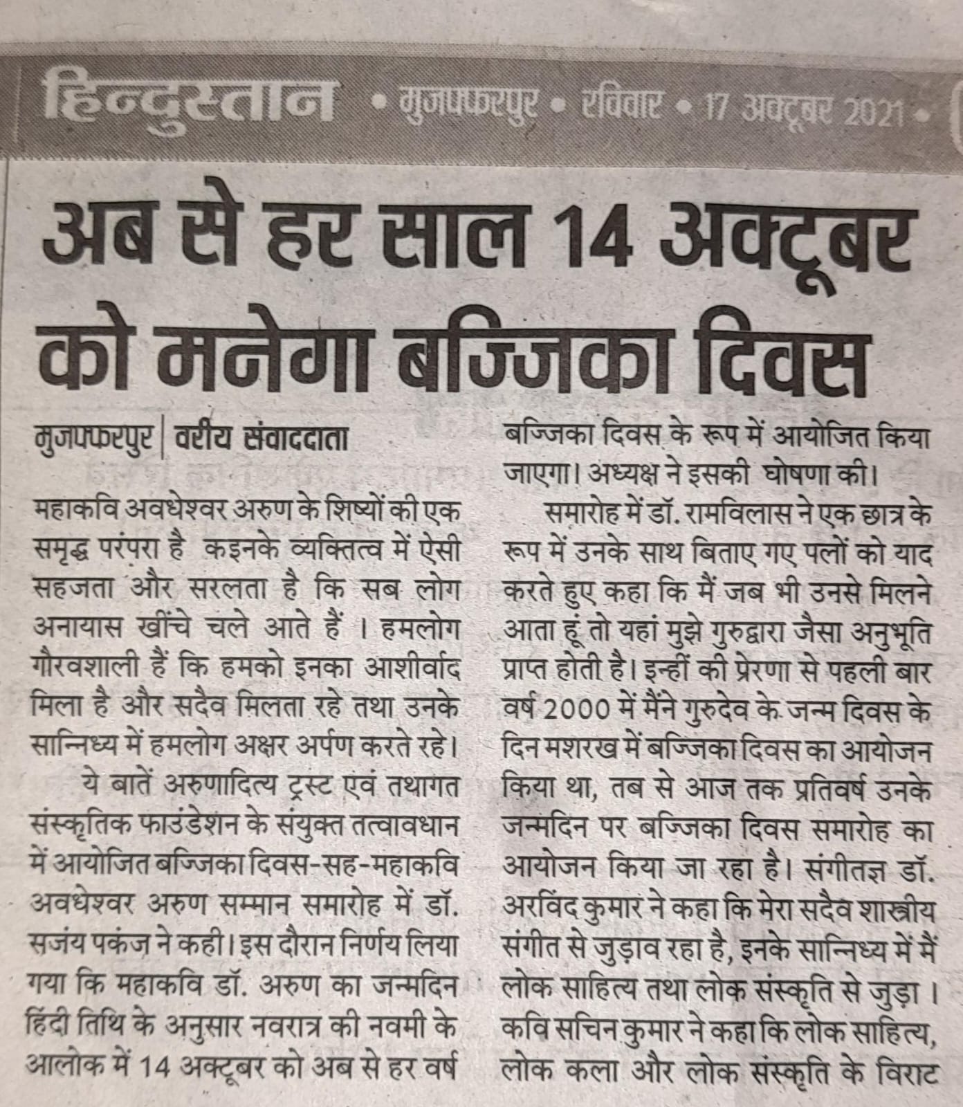 महाकवि अवधेशवर अरुण जन्मदीन सह बज्जिका दिवस समारोह 2021
