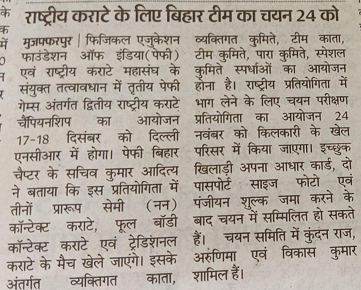 तालकटोर स्टेडियम में राष्ट्रीय कराटे चैंपियनशिप आयोजित की गई, 17 से 18 दिसंबर 2024 तक नई दिल्ली